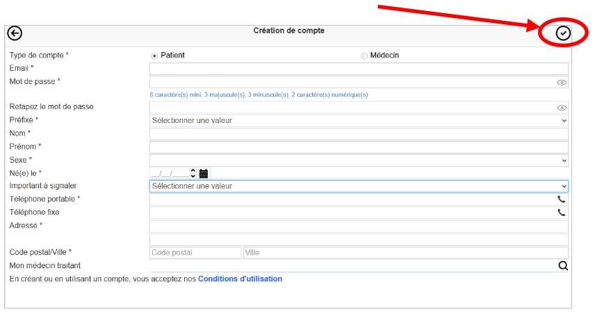 5/ Je valide en cliquant sur la coche en haut à droite du formulaire