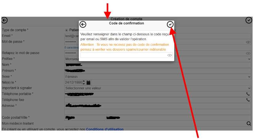 10/ Je renseigne le nouveau code que je viens de recevoir par sms (qui sera donc différent de celui de l’étape 6)